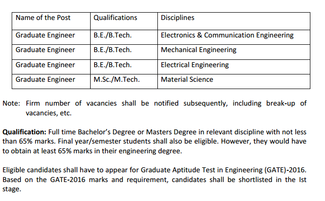 Educational Qualifications: B.E/B.Tech/M.Tech/M.Sc